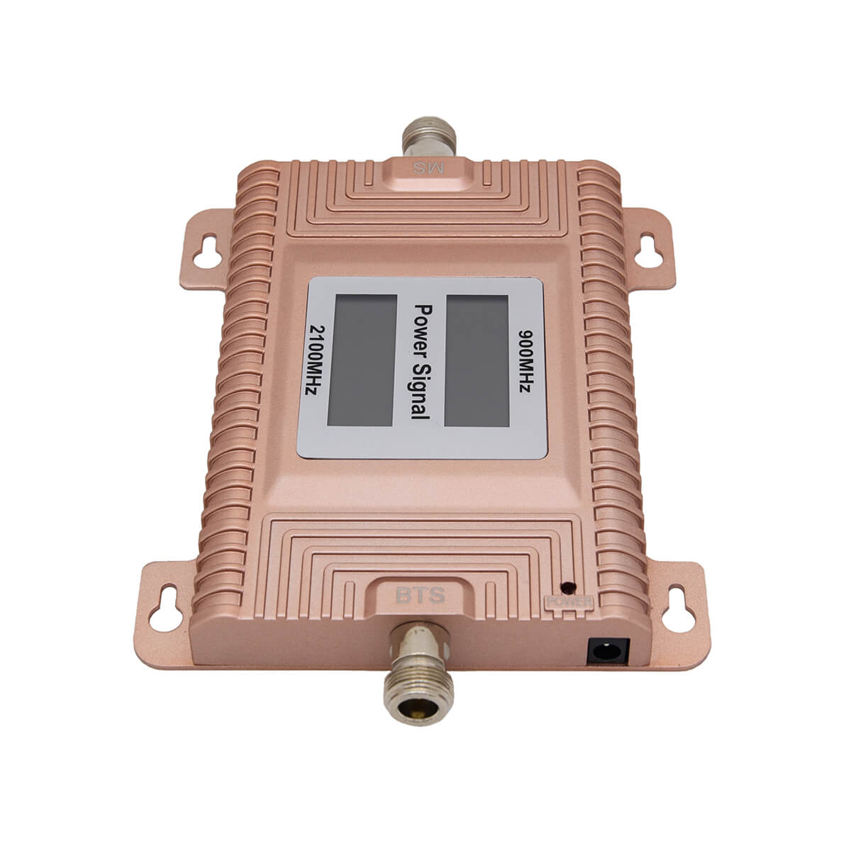 Комплект усилителя сигналов сотовой связи GSM 900/2100 МГц стандартов 2G и 3G. Помимо блока усиления в белом металлическом корпусе с небольшим ЖК дисплеем, в комплекте уличная направленная антенна и комнатная антенна круговой направленности. Обе антенны помещены в пластиковые футляры дли создания эстетичного внешнего вида и защиты от атмосферных влияний. В комплекте так же соединительный коаксиальный кабель, адаптер питания для блока усиления, металлический крепеж для антенн. Общий коэффициент усиления комплекта не менее 70 dbi.
